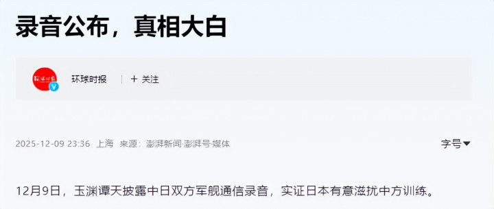 但谎言在铁证面前根本站不住脚。中方在国防部2025年12月9日的新闻发布会上明确指出日方恶意跟监滋扰、倒打一耙的行为,拿出了符合国际惯例的详细通报记录,有力驳斥了日方的不实言论。
