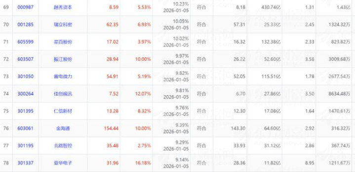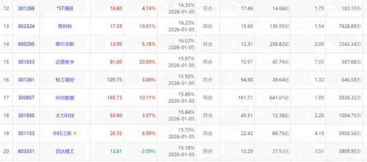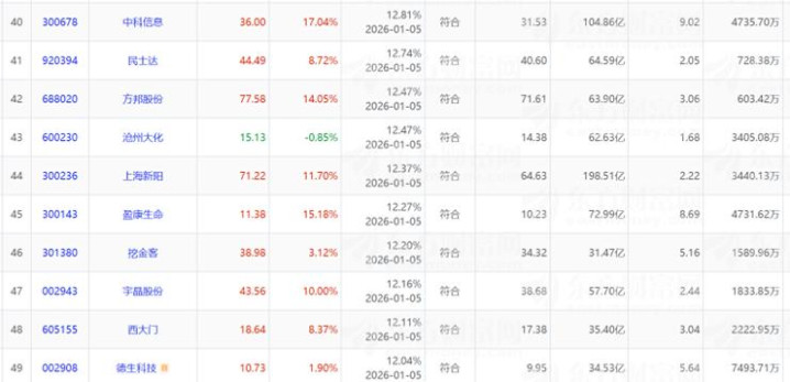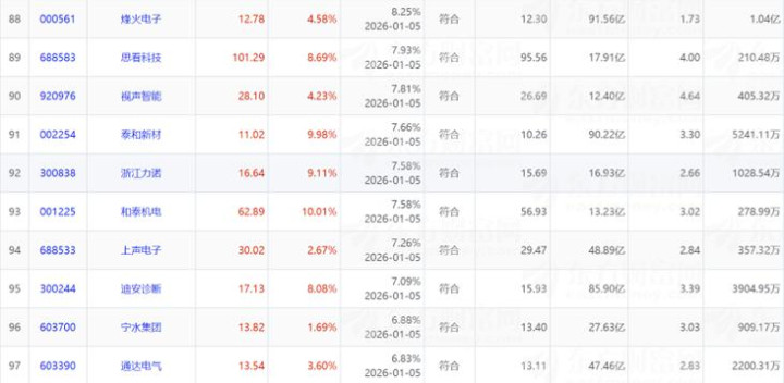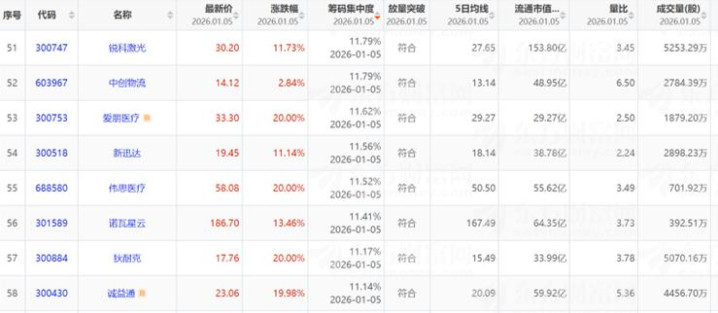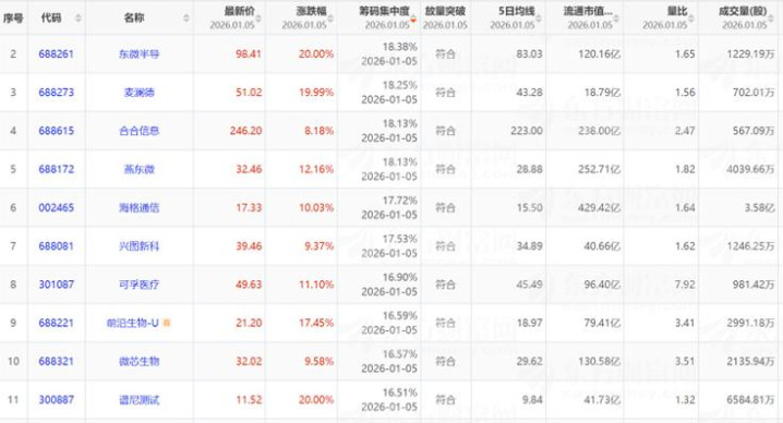 12月5日放量突破单峰密集区个股100只,按照筹码集中度由高到低排列。