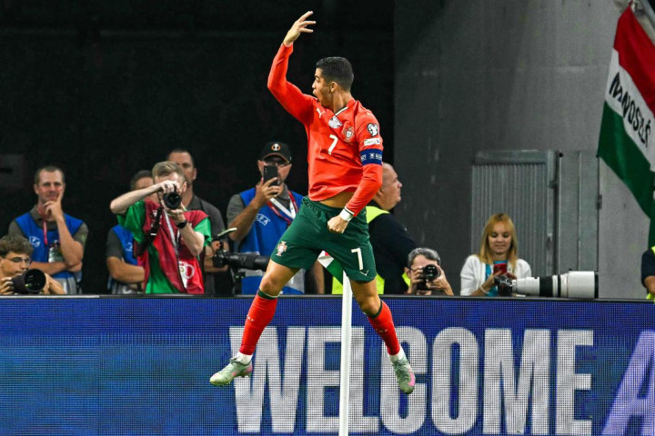 葡萄牙球星罗纳尔多在射入罚球后,做出标志性的“Siu”庆祝动作