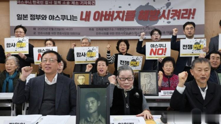 韩国这边,老百姓和受害者家属用法律和集会的方式表达反对。12月下旬,有当年被日军强征的韩国人的后代,直接把靖国神社告上了首尔的法院,要求把自己先人的名字从神社的“祭神名簿”里删掉,还要求赔偿精神损失。